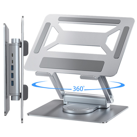 סוג c usb3.0 תחנת עגינה מתקפלת מחשב נייד לעמוד מתכוונן 360 תואר מחשב נייד rotable מעמד עם רכזת USB